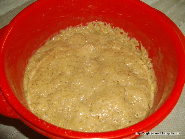 As you know, I love trying fermentations. Fermenting is both a low energy and simple method of preserving food and way to partially digest and improve the food before we eat it. I make and eat fermented dairy products (yoghurt, kefir and cheese), fermented beverages (ginger ale, barley water and beet kvass), fermented vegetables (picked cucumbers and sauerkraut), and I "soak" all grains and flour with kefir or whey prior to cooking. In the case of rice and quinoa, if I want to cook these in the evening, that morning I put the grain in a pot with the correct amount of cooking water and a few tablespoons of kefir, and then cook them as normal in the evening. For bread, I mix up the flour and water in the morning and add the yeast and bake it in the afternoon. I hadn't figured out how to soak the flour for cake yet though... until Herman turned up.