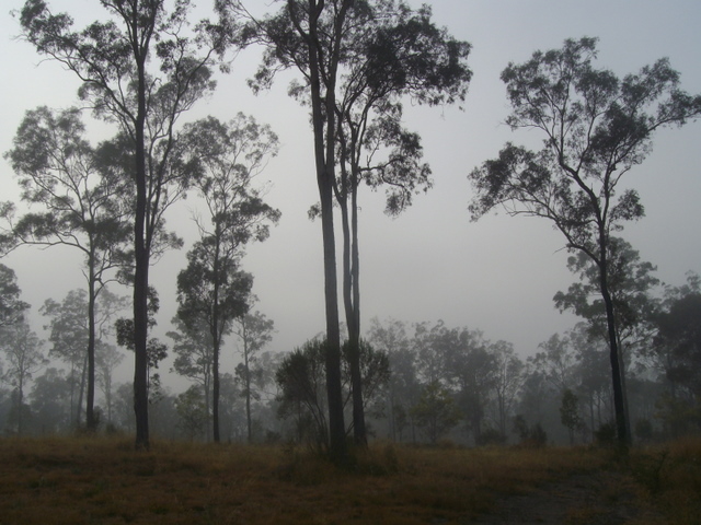 The iron barks on a misty morning