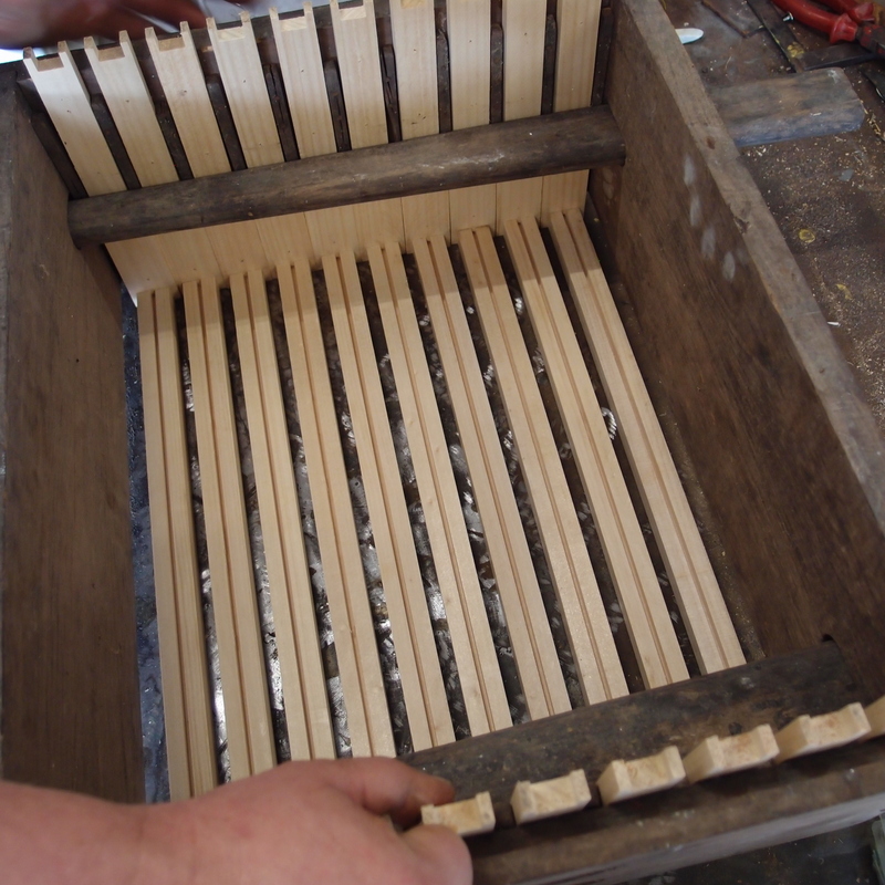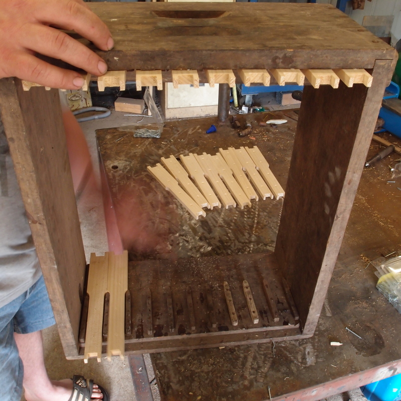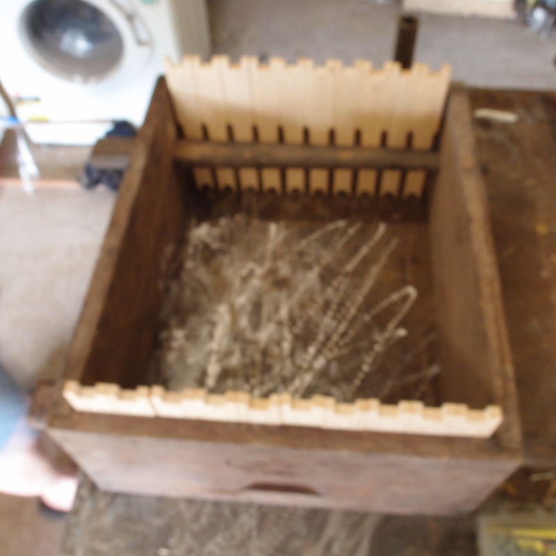 Among the old gear was this box, which is used to hold the frames while they are nailed together. The box holds 10 frames