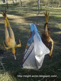 I have read different ideas about whether the meat should be rested, but we usually put the chicken in the fridge for a couple of days before it goes in the freezer. This is supposed to rest the meat and let it go through rigor mortis and back to soft meat again before it gets frozen. I know that in the “old days” people used to kill a chicken in the morning to eat for lunch, but was that because they didn’t have refrigeration? Anyway, it works for us.