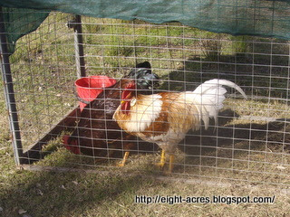 The Rhode Island Red chicken weighed 1.7 kg, while his cross-bred brother was only 1.5 kg.. We haven’t eaten them yet, but I do look forward to it. We pretty much only eat chicken that we have raised, and if I do have a bit of commercial chicken I can taste the difference, or rather NOT taste anything, commercial chicken breast meat is bland, dry, mushy and weird white colour. Our chickens are tasty, juicy, with a meat texture (not stringy, but you know you’re eating meat, not mush) and the leg meat is a lovely dark brown when cooked. We cook ours either roasted whole, or in pieces as a casserole. There is no need to cook young roosters (less than one year old or so) for a long time, they are not tough as long as they have been cared for correctly (i.e. not too old, well fed, not stressed). Our older chickens can be tough, but 12 hours in a slow cooker will produce a very tasty meal (apparently coq au vin is supposed to be cooked with an aged rooster for added taste!).