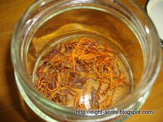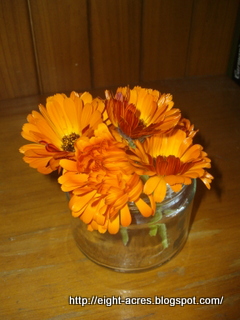 On ingredient that I've been hoping to add to my tea is calendula, and it is finally flowering in my garden. I have been picking the flowers and letting them air dry in a jar (as it is very dry here at the moment, I don't need to use the dehydrator). When the petals are dry I pull them off and put them in another jar, ready to add to my tea.