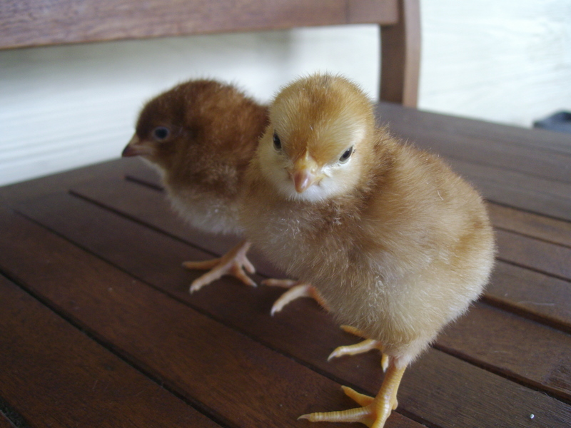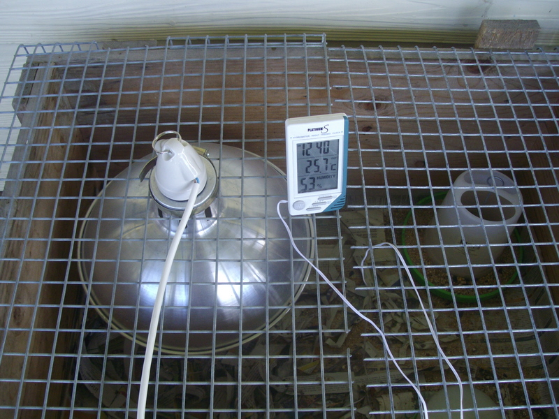 After the chicks hatch they need to be kept warm (38degC at first), so they need a nice draft-proof "brooder" box and a heat source. We use a wooden box, but any type of box is fine, I've even seen a cardboard box used. The size depends on the number of chicks, when they get bigger, its surprising how much mess they make too, so even if the box seems huge at first, they will grow into it! For the heat source we've been using an incandescent lightbulb. These used to be $1-2, a great cheap solution, but we can't buy them any more in Australia.