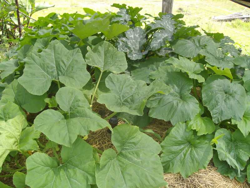 | Zucchinis and corn are supposed to like growing together, but can you see the corn? |