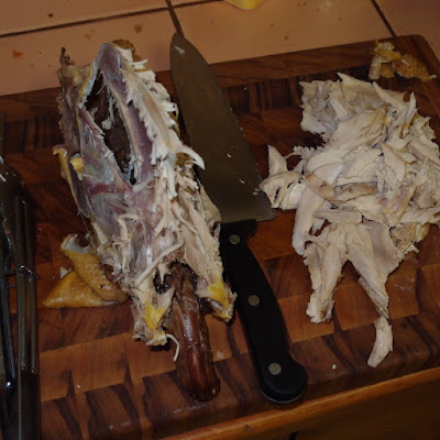 | a home-grown roast chicken, with the carcass ready for the stock pot |