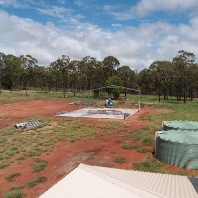 We decided a while ago that the window in the old pantry had to go. We want to put the stove in there and I don't want to have to clean grease off a window. The glass was cracked so we would have had to replace it. Also it faces west, so the window was letting in a lot of heat. We did some demo work and removed the window and replaced it with weatherboard. Its looking very neat. Now we are ready to sheet in the pantry. We are SO close to painting the kitchen and side room, we really underestimated the amount of bogging and spackling that would be needed to prepare these rooms. The most exciting news is that shed construction has started AND we are not doing the work!! It looks like the contractors are doing a great job, so I'm looking forward to seeing the finished shed.