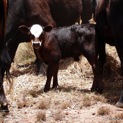 Its been hot and dry, so we've fed out a few round bales of hay to keep the cattle going. The calves are looking nice and fat, but their mothers are getting skinny. And now that all the little boys have lost their balls and healed up, its time to decide how we want to wean them (i.e. who goes into which paddock for a while). Also, the one cow who hadn't had a calf yet, which we were going to eat, just turned up with her own little baby. So now the calving rate is 100% (nine from nine) and we have no rations!