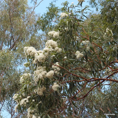 Once again, we haven't got out and done much at all on our land, we've been in the house painting, however we have been observing all our wonderful gum trees starting to flower, and its great to know that they are working for us even though we don't have to pay them any attention. They are producing flowers, shade, timber and pumping water up from deep down in the soil.