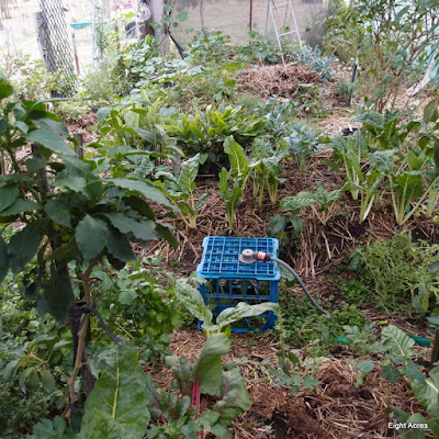 There is a lot going on the garden and its very difficult to get a good photo of it all at once, so I'll do another post later with more details. We should soon have plenty of zucchini and beans, I have been watering and spreading worm compost and mulch around. Lately we have just had silverbeet and celery and some very determined capsicums from last summer. I have put up even more shadecloth and there are empty beer bottles everywhere!