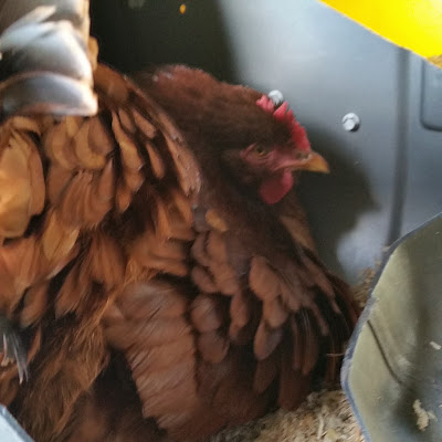 We finally got a chance to butcher the four remaining roosters and cull six older hens, which has got us down to more management numbers (20-ish hens with three roosters in three chicken tractors). And now one of the young hens has gone broody...