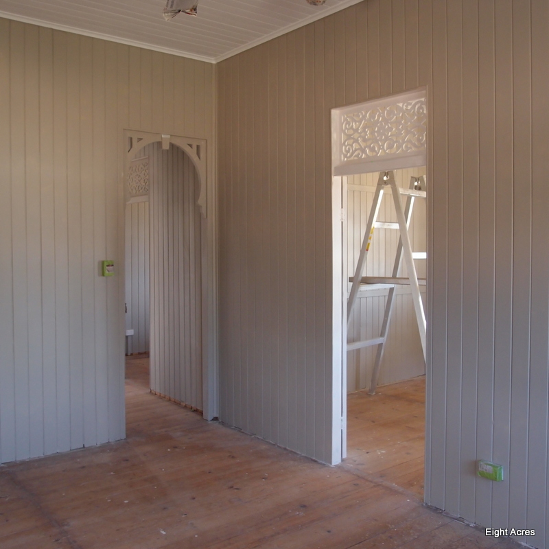 I am very pleased to say that we finished painting the bedroom and lounge - that includes two coats on the ceilings and two on the walls. All that remains in the kitchen and bathroom! We also got some shelving for the shed mezzanine floor, so will be working on assembling that and then start moving things from Nanango into the shed.