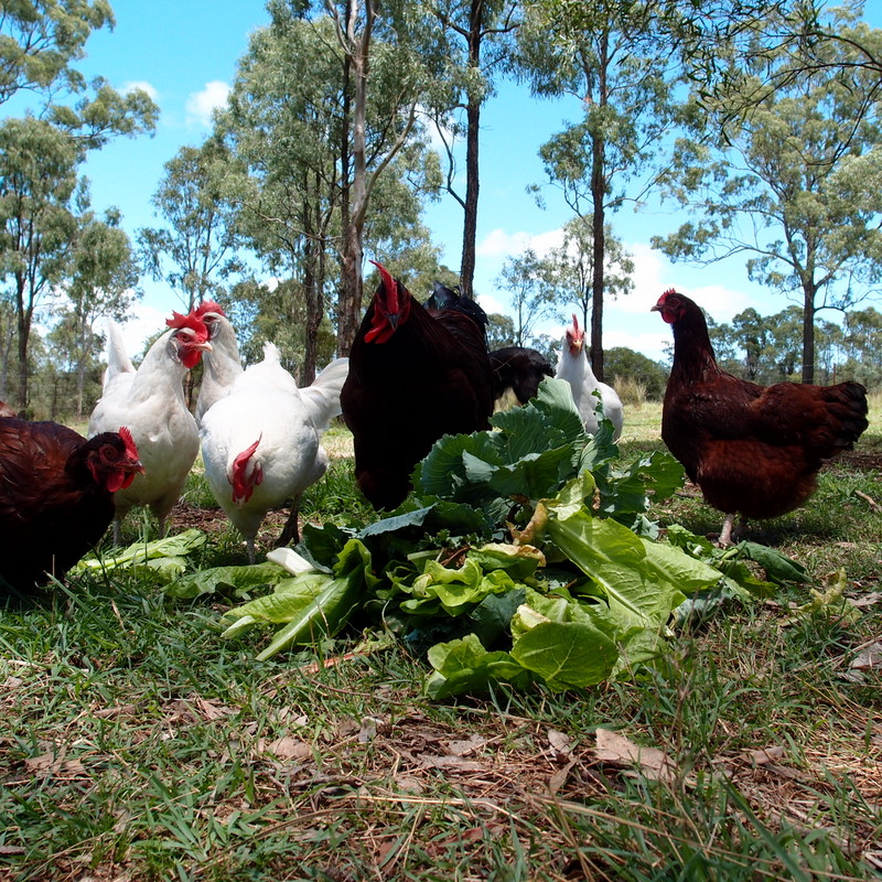 Mealworms are one source of protein that you can grow for your chickens. Mealworms live in grain (which doesn’t quite help us to avoid grain, but they don’t need much). Mealworms convert that grain to higher protein feed just by feeding and growing, so its a way to increase the nutritional value of the grain. They also need the occasional carrot or apple to provide moisture, just replace it when its all eaten or gone mouldy. Compost worms are another option, especially if you are keeping a worm farm anyway, its very easy to dig around in the worm farm and grab a few worms for the chickens. Black Soldier Fly larvae are another option that can be set up around the chicken tractors as self-serve protein systems. I can’t get into the detail here, but there is plenty of information on the net about all of these options. Harvey Ussery also suggests in his book that you could hang a bucket of roadkill meat in the chicken coop and let the maggots fall out to feed the chickens! He calls it free-food from thin-air. There are certainly some clever ideas out there and we do not need to be constrained to buying expensive bags of feed from the produce store.