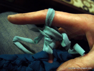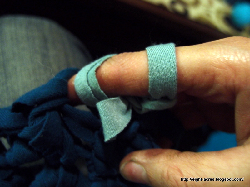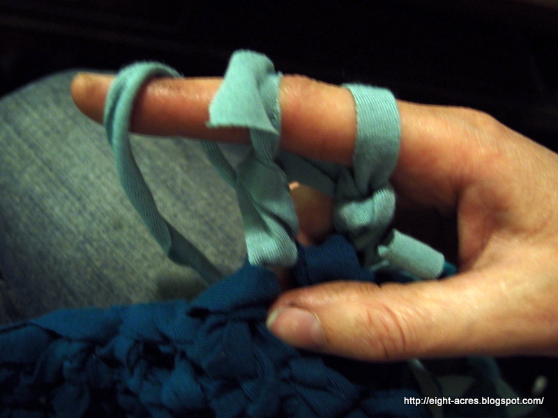 I hope that helps, its very hard to photograph with one hand while crocheting with the other hand! Do you crochet? Have you tried finger-crochet? Have you made a rag-rug? I think I'm ready to try wool crochet now, but I have some more fabric "yarn", so I might try a round one next!