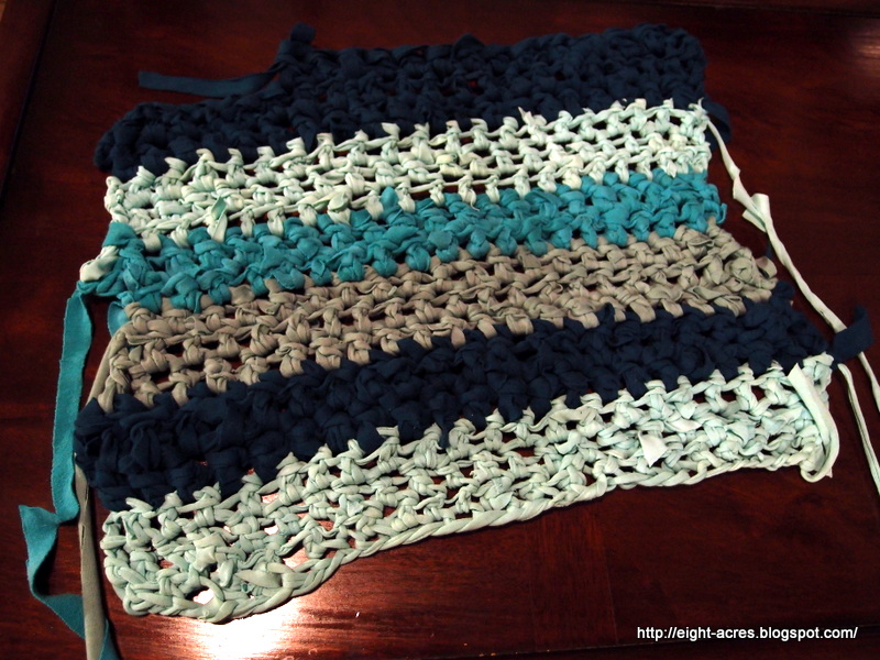 Recently I've noticed lots of posts on rag rugs, or maybe they just caught my attention because we need new bath mats, I had read a few quickly, it looked easy enough, so when I saw fill a bag for $1 at the op-shop I decided to choose some t-shirts to make myself a rug. When I went back to look at the rug instructions, I was amazed to find all the different techniques, I found at least five different ways to make a rug:
