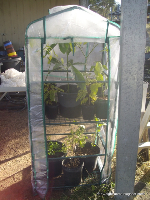 - I bought a small greenhouse for the sensitive plants that I want to keep - chillies, eggplant and avocado that took SO long to mature, I don't want to start from scratch next spring, so I hope to keep them all alive over winter, I also put away the greek basil and the ginger. We were planning to have the aquaponics greenhouse finished, but got carried away with other projects, so a $40 plastic greenhouse is sufficient to keep a few things safe from frost this winter.