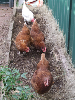 We also have seven chickens, which provide us with eggs, who also give us fertilizer for the garden, and keep insect pests under control. They are an integral part of the food growing system. On average, the chooks lay about 2 dozen eggs a week.