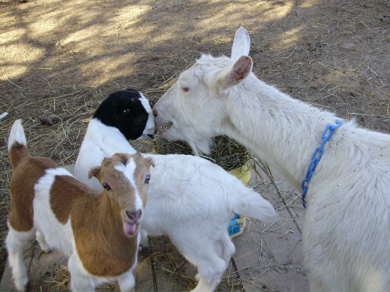 Fortunately for me I have an excellent and hard working farm dog who helps me keep the goats in line. Also we favor the La Mancha goat breed – they tend to be quieter and more well behaved. There is no goat smooching on our farm.