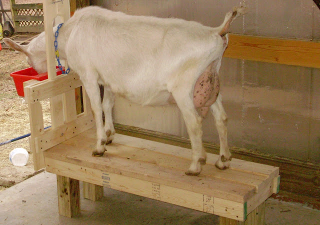This year has been a bit different. For the first time we don't have pigs to eat all that delicious extra milk so I am only milking in the morning. The babies that we kept this time (two doelings who are sure to be prized milkers when they are ready) are separated from the mommas at nite, I milk the ladies in the morning, and then the babies can have the milk for the rest of the day.