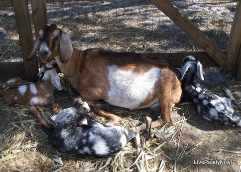 Over the past few weeks I've been interviewing bloggers who keep dairy cows or goats. This week, I have an interview with Rose Petal and Silver Oak of the blog self-suffieincy Live Ready Now. The family lives in a tiny house on a 20 acre off-grid homestead next to cattle ranches and orange groves, where they raise chickens, milk a few goats and a jersey cow, enjoy an Arabian mare and a mini horse, two cats, two dogs, a whole slew of rabbits, and three guinneas. Over the years, the family has become increasingly interested in learning how to live sustainably. Today they are going to share their experience with milking goats and cows.