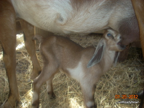RP: We milk our goats twice a day, around 7:30 in the morning and 5:30 in the evening. The kids stay with their mamas so the first few weeks we get only what's left over. This yields much healthier kids than bottle feeding with milk replacer as we did at first. At four weeks we separate them nightly so we get all the morning milk, then the kids run with their mamas in the paddocks all day. If we are gone in the evening we don't worry about milking because the kids pretty much drink it all anyway.