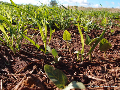 The second time we planted oats, we added medic, I wanted to add brassica as well. The guy at the feed store told me that brassica can really turn into a weed. A what? Its not a weed if the cattle eat it, its free food! It was really expensive, so we didn’t include it this time. I think the main reason that people don’t include lots of plants in their forage is that its harder to dry it evenly for hay (I'm just guessing here), and harder to set up the cultivator for different size seeds, but it does produce a better mix of feed for the cattle, healthier plants (think companion planting) and feeds the soil microbes that in turn feed the crop.
