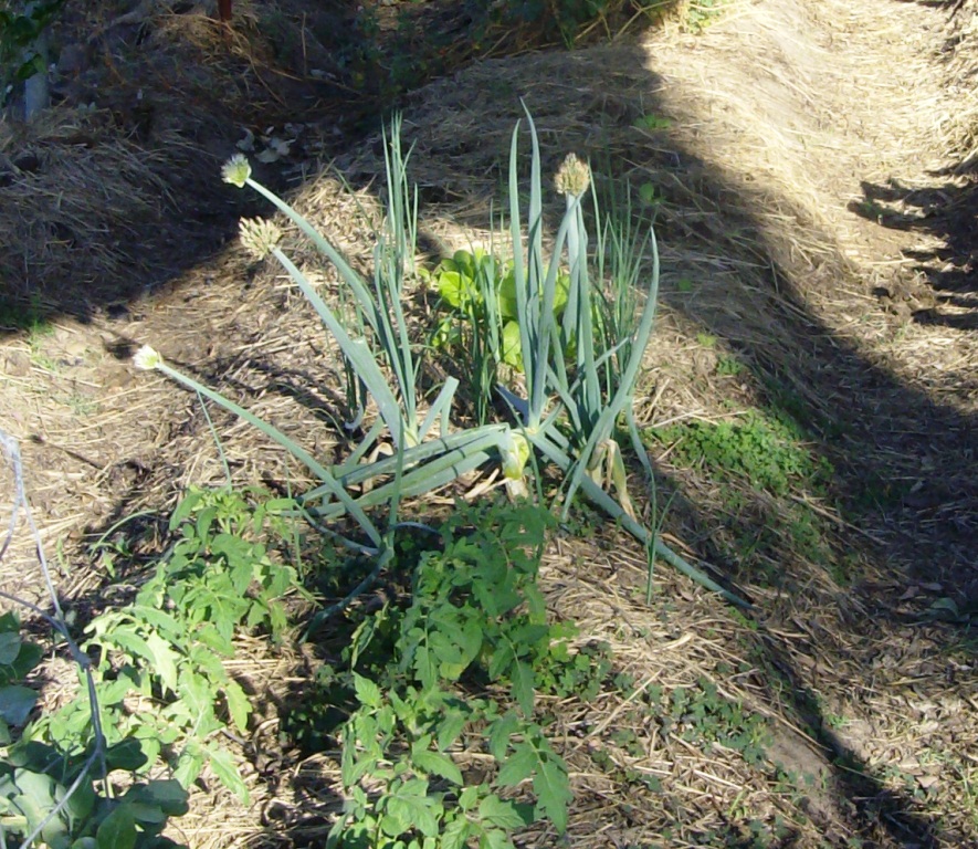 Spring onions: you can plant heaps of these all around the garden and pick them whenever you need some for dinner, they keep growing for ages and eventually they flower and produce seeds, but you can still eat them, just cut off the seed head.