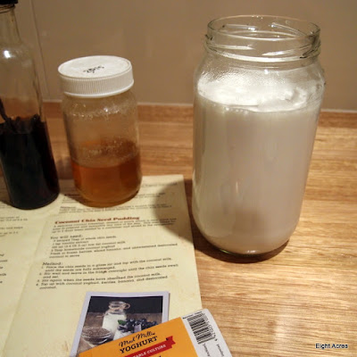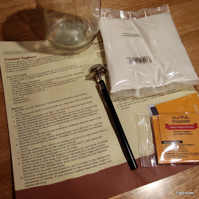 The brand I can get here is $3 for 200 mL containers. I was making yoghurt from powdered milk for about 50c/L. So I was thinking there must be a way to make coconut yoghurt, but I didn't feel like mucking around and wasting heaps of coconut milk trying to get it right.... and then Biome Eco Store sent me a Mad Millie Coconut Yoghurt Kit to try. The kit is a 1L jar, starter culture, thickener, thermometer and instructions. If you don't need the full kit you can actually buy the Mad Millie Coconut Yoghurt Thickener, the Mad Millie Coconut Yoghurt Culture and the Mad Millie Coconut Yoghurt Jar separately (the yoghurt culture for coconut yoghurt is the same one used for dairy yoghurt). (Did I tell you about Biome Eco Store? I love their products!)