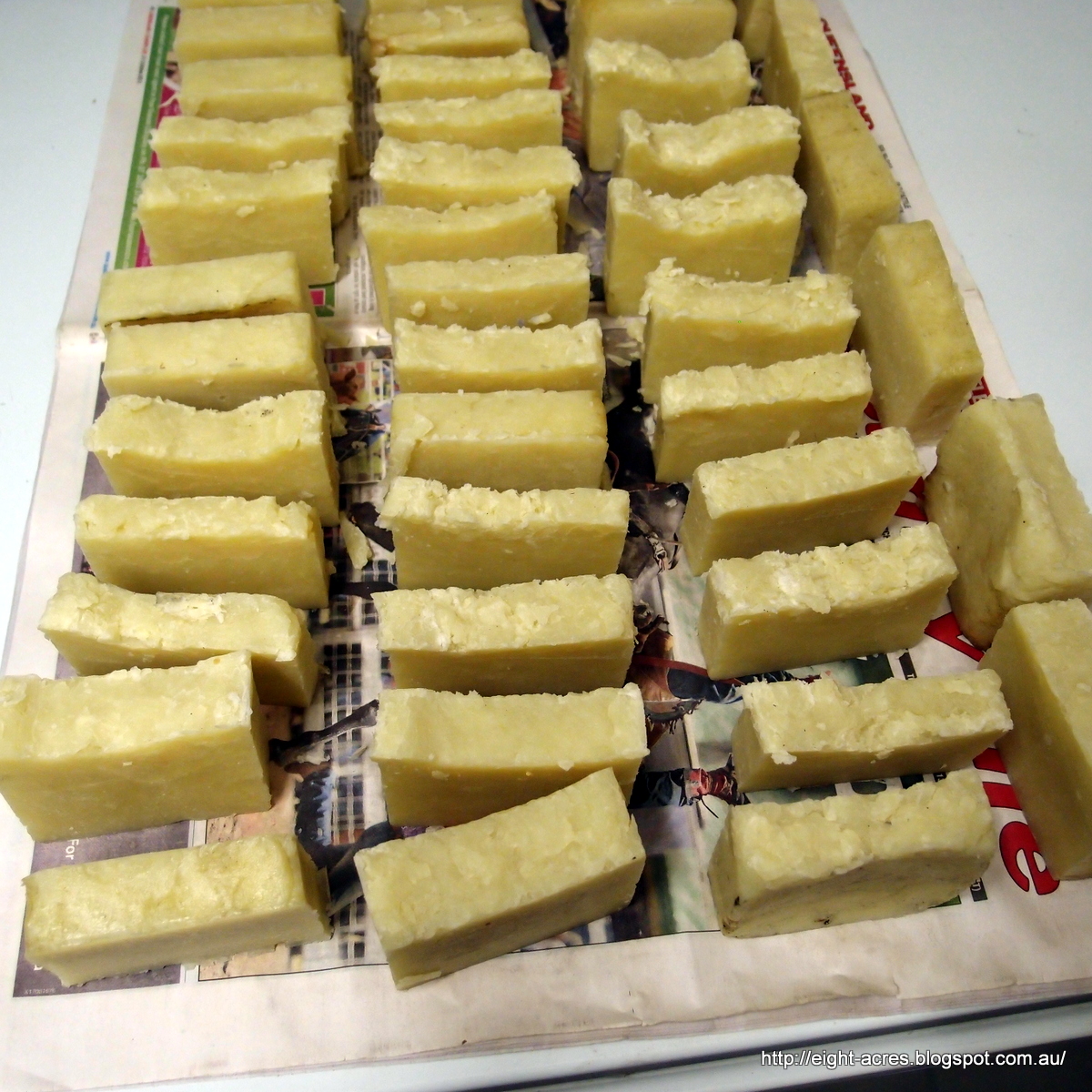 | the unset disaster soap scooped out of the moulds |