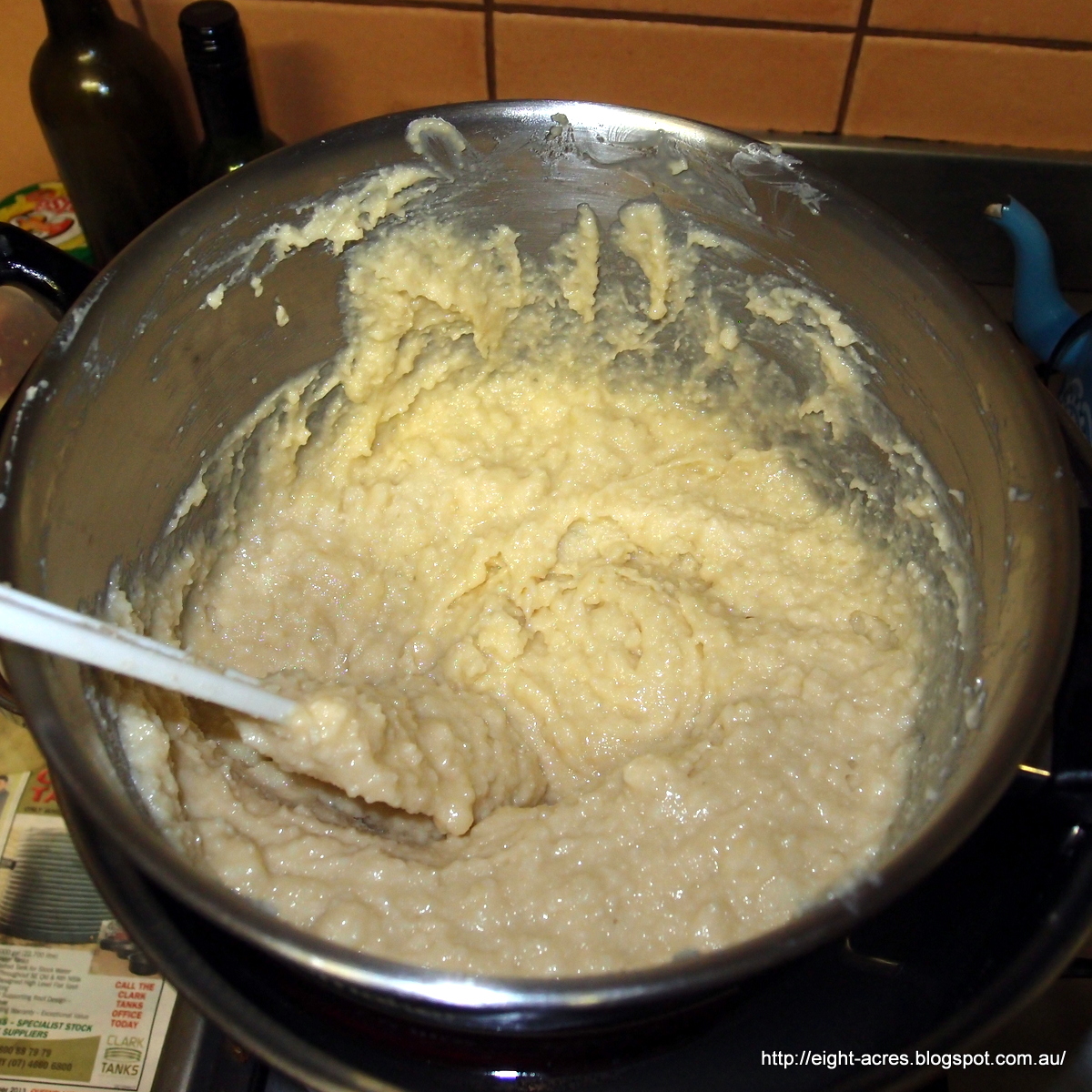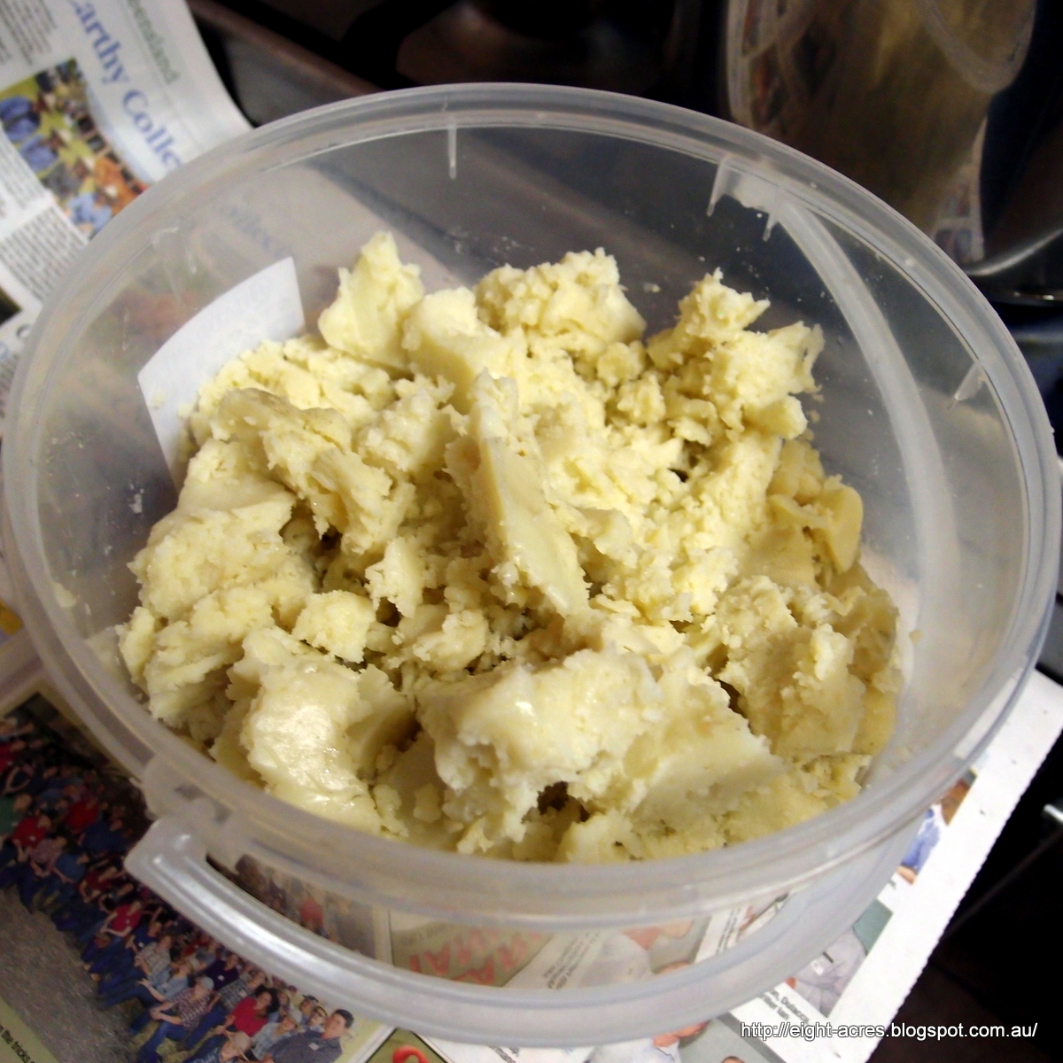 I had made three batches of soap already, so feeling like a seasoned professional, I went ahead with another batch, even though my digital scales needed a new battery and I couldn't find my good thermometer. I figured that I was so good at soap making now that I could be able to use my spare analogue scales and my cheese-making thermometer, even though the scale on both is pretty dodgy and the scales don't seem to zero properly. Yes, the scene is set for a soap making disaster.