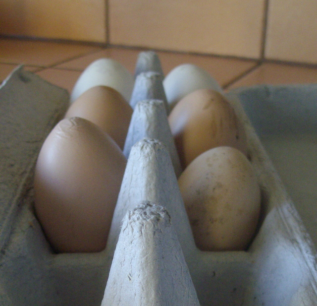 Considering how long humans have been keeping chickens, the collective knowledge about egg eating is surprisingly inconclusive. Most of the information that I've read on the net or in books has suggested either culling the chickens or filling an egg with mustard to put them off. The second option was looking better than the first, but still not ideal, then I came across this forum thread, which had some very insightful suggestions.