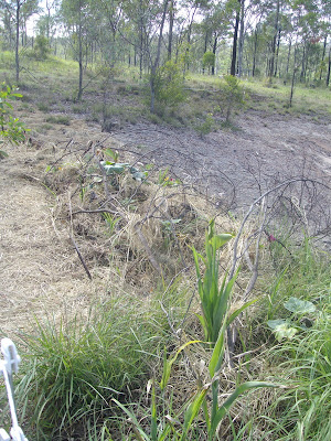 Then we went to a permaculture techniques day with our permaculture group, and looked at some hugelkultur and swales at the Bottle Tree Hill Organics farm. Swales are kind of like contour banks across slopes, consisting of a trench uphill and a mound downhill, used to hold water on the surface of a slope for longer, to allow it to soak into the mound of dirt and to direct water towards dams etc (diagram and info here). We have plenty of slopes, erosion, dry spots, so we could definitely see the need for swales of some kind, or maybe more like Peter Andrews style contour banks to direct water and fertility (a contour bank doesn't have so much of a trench on the uphill side). Even though we have the little tractor, we weren't sure that it was up to the task of digging trenches and building mounds on a large scale.