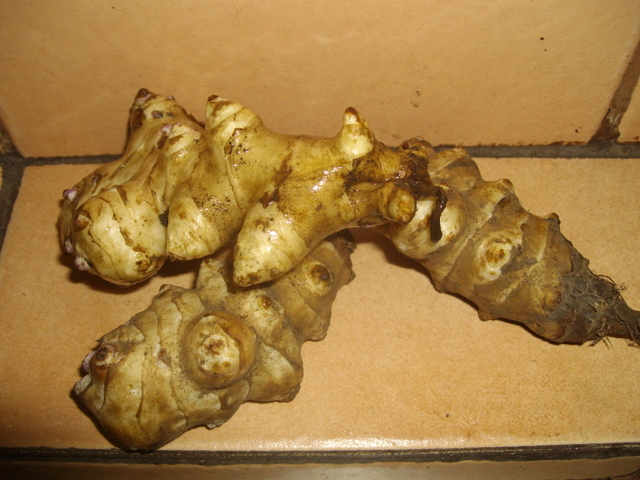 My friend at work with the garden full of crazy and unusual vegetables (eg spaghetti squash) has given me some Jerusalem artichoke tubers to eat and to grow. Apparently they go quite crazy in summer, so I decided to plant them outside the garden fence with the arrowroot (which we should also eat), so that they can provide shade in summer.