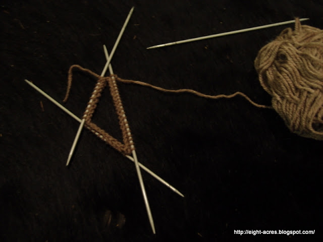 But this time I thought I'd better find the right pattern. I was trying to use the pattern that was on the yarn label, but that was for five needles and Linda only sent me four needles. In hindsight it probably would have been easier to just buy myself five needles, but I was determined to just use the four, so I went looking for a pattern. All my pattern books and most of the free patterns on the internet used five needles, but I found a youtube video with four needles, so I knew it was possible.