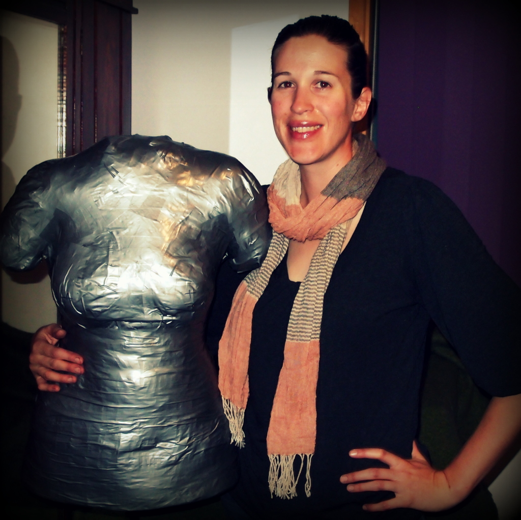The actual process is very simple. Put on an old t-shirt and have your helper wrap you in at least 2 layers of duct tape, the smaller the strips the better so that you get a nice smooth finish. Use plastic wrap around you neck, and any skin not covered by the t-shirt that you want to be part of the dummy. The time it takes will depend on the patience of your helper, Pete is a perfectionist, so I was feeling a little claustrophobic by the end of the process, while he was getting it to look "just right".