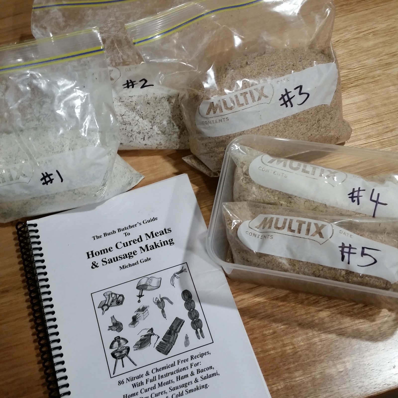 Several years ago we bought an awesome little book called "The Bush Butcher's Guide to Home Cured Meats and Sausage Making" by Michael Gale. This book contains 64 sausage recipes, as well as instructions for smoking meat and making bacon.