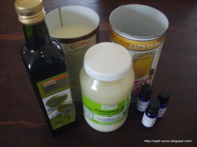 The oils used - tallow, olive oil, coconut oil and lavender essential oil.