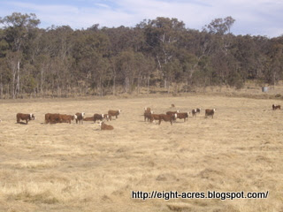 At our 258 acre Cheslyn Rise property, we (I mean Pete, with me supervising) have slashed certain areas of the pasture that we know are free of stumps and logs etc. At Eight Acres, our strategy was to fence off a paddock of about an acre, let the cattle eat as much as possible, then we could see what to avoid on the slasher.