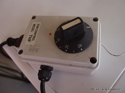 Fortunately for us, we had a spare bar fridge, that wasn't being used for anything and wasn't really worth selling. We set that up with a thermostat and can easily adjust the temperature to suit cheese maturation. Ideally cheese should mature at around 8-12degC, which is warmer than a normal fridge temperature of 5degC. We just plug the fridge into the thermostat, and the thermostat into the socket. The temperature sensor goes in the fridge and we set the temperature on the dial to about 10degC. A second thermometer in the fridge is a double-check on the thermostat. The cheeses are either vacuum sealed, or more recently I've ventured into waxing the cheese. There's also jars of feta in olive oil in the door.