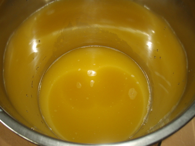I added 1/2 cup of raw sugar to 1.5 L warm water and 0.5 L whey from cottage cheese and stirred it all into the lemon/orange juice.