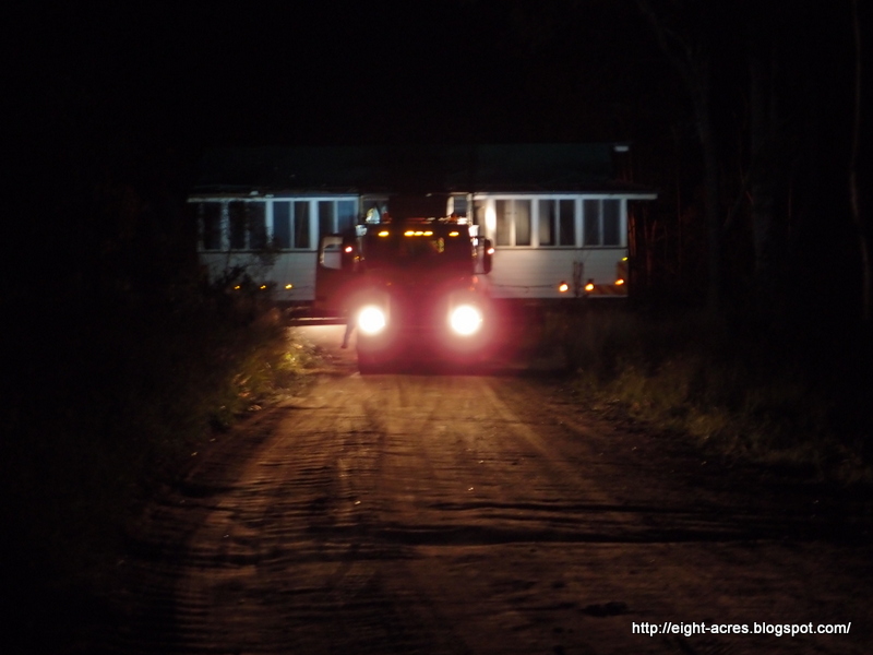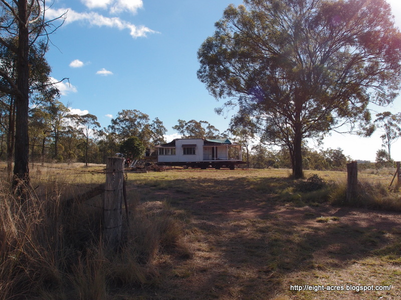 The removalist just has to put the roof back on and stump the house. Then all we have to do is connect power, install rainwater tanks and septic system, replace the roof, install insulation and ceiling fans, paint the interior...... its fun to have a project! I will show you around the inside as soon as the removalists have finished and its all settled on our property.