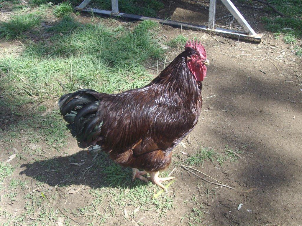 Randy (our younger Rhode Is Red Rooster - with some of the girls)