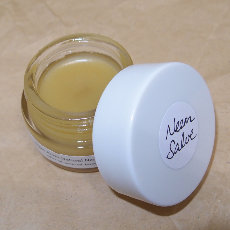 After my success using neem oil to control insects around the farm and to cure my toenail fungus (how I use neem oil), I did a lot of reading about neem oil and I was keen to try to harness its properties as an anti-microbial and anti-inflammatory to help heal skin.