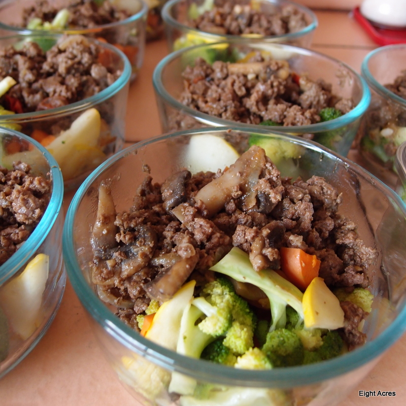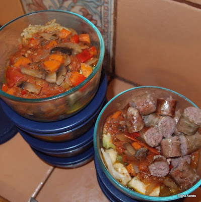 This meal was all about using up leftovers. We had got a bag of old tomatoes from the supermarket, and they really needed to be cooked right away, and we had leftover rissoles, but not quite enough, so I also opened a packet of paleo pork sausages (we bought from a local supplier, so yummy and spicy!). I also added chopped veges and it was a perfect combination for a tasty lunch.