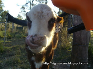 In part one of this long story, I explained how we brought home the first weak braford calf and struggled with whether or not to give him milk, we thought he was just weak, and if we could get him to eat more he would get better. At the same time we were keeping an eye on another calf that we had noticed was skinny and often separated from the herd. We were worried that she also didn't have a mother, but she seemed to still be doing ok. Then one day we couldn't find her anywhere, and the next day she was lying in the grass with the rest of the herd but couldn't get up, so we brought her home to Nanango too (this time in the dog box on the ute, not the back of the 4WD).