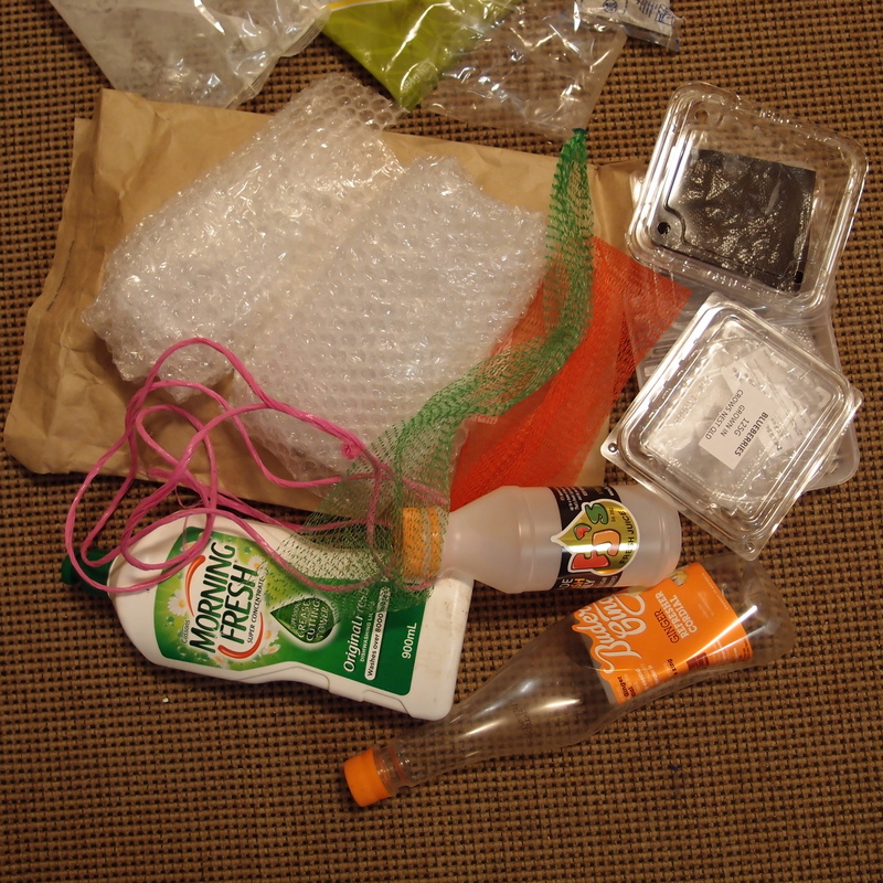 - Lots of packaging! Ironically I bought a bag of plastic pegs made from recycled plastic - in a plastic bag. Most of the thin packaging I can at least take to my local Coles for recycling.
