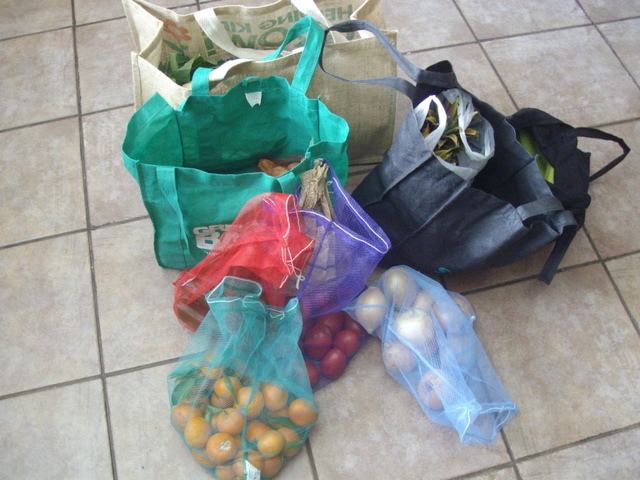 Having all of those plastic bags come home is very discouraging. Though now we bring all the food in the cart to the car and bag them in our bags there, but produce bags are still needed.
