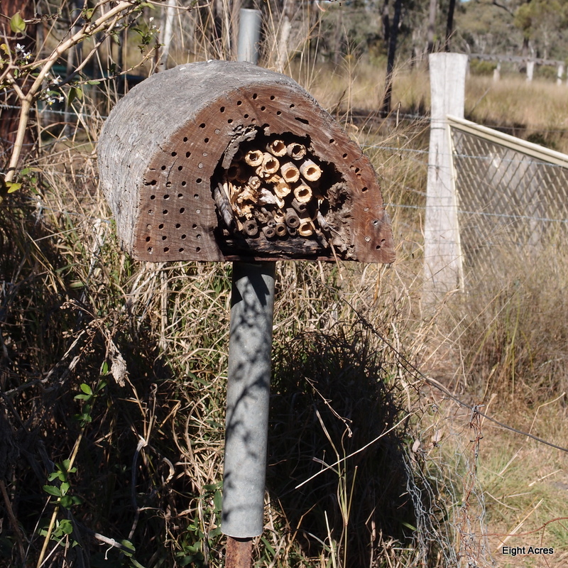 2) native bee/wasp hotel - this is for solitary bees and wasps (they just lay a few eggs in holes in wood and the new insects hatch and forage near the hotel, providing both pollination and pest control as some of them eat caterpillars too) and it does help to attract pollinators if you give them somewhere to live.