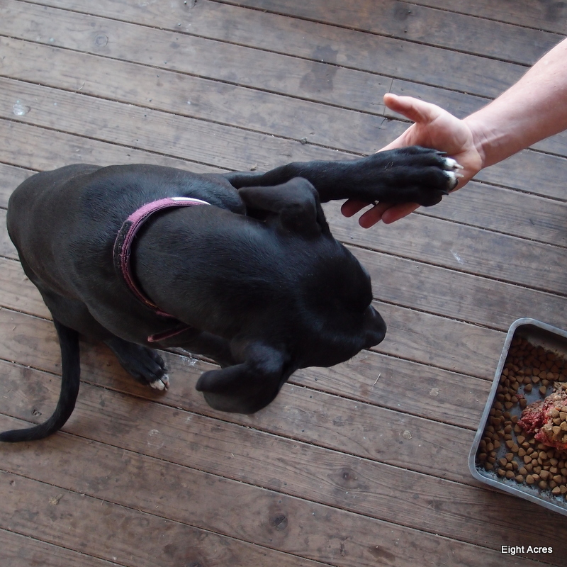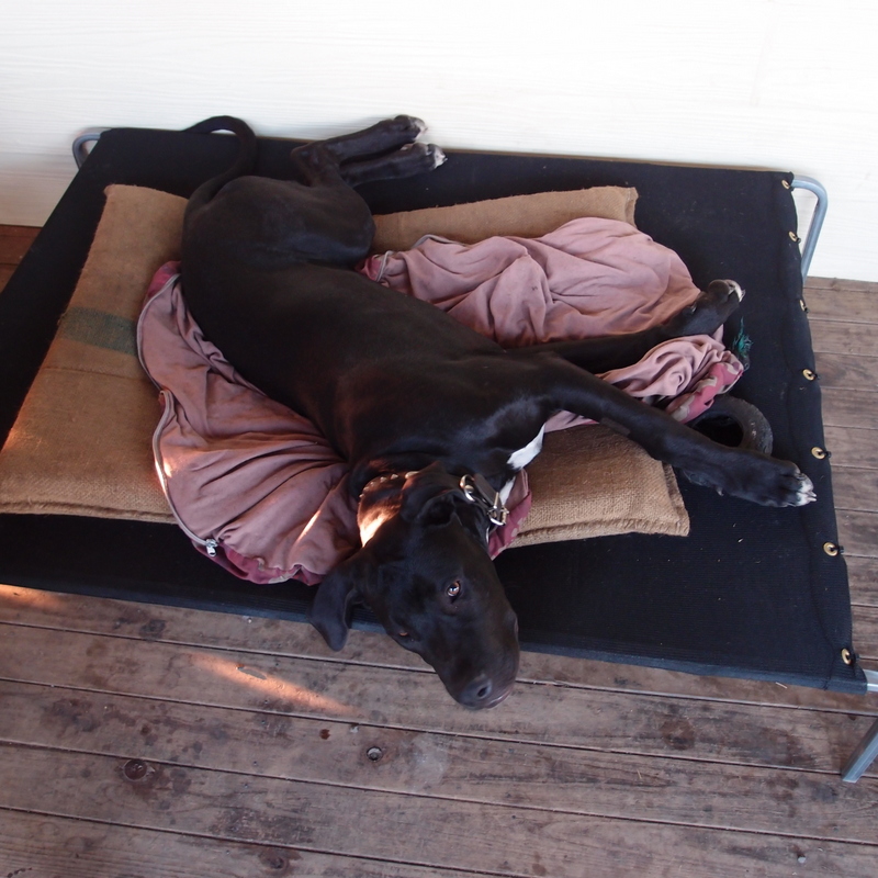 Gus eats SO MUCH FOOD! We hope it will slow down where he stops growing. His weight has increased from 7.5 kg when he first came home to over 30kg. It took us a few days to realise that he was hungry in the afternoon. Since then he now has breakfast and an afternoon snack. We just keep putting food in his dish until he is full, I don't want a stunted big dog! And if he's allowed to get too hungry he helps himself (or Taz helps, we're not sure, but it took two dead chickens to figure out that feeding Gus in the afternoon is number one priority before we let the chickens out).