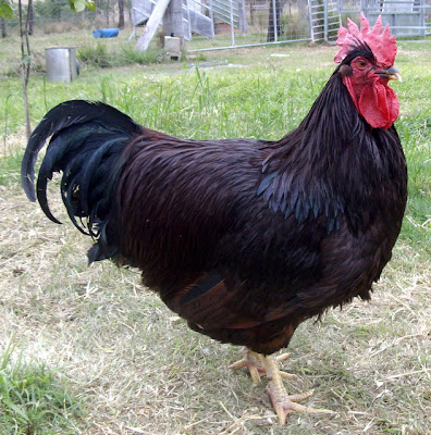 If you have a civilized city flock of hens, you might not have had the pleasure of watching a rooster looking after his girls. Both our roosters pay the hens close attention, they can usually be seen wandering around the yard with at least one or two hens following. Whenever the rooster finds something to eat he has a special cluck to call his ladies over to share the treat. He has another call to warn of danger, and he goes running to any hen that calls out in trouble. One of our roosters used to wait each evening until all his hens were up on the roost before he would jump up to sleep there too. Roosters can be over protective to the point that it can be difficult to collect the eggs without being attacked on entry to the pens. None of ours are that bad at the moment, but we have been attacked a couple of times when we got too close, so it pays to stay a healthy distance in case they get the wrong idea. However, one rooster we had used to play "chicken" with the dog, I could never tell if the rooster was enjoying the game, but Cheryl sure was, they would run at each other and see who turned back first, I think Chez had a few pecks to the nose as a result, but her tail never stopped wagging.