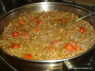 Making the tortillas was more of a challenge, until I saw a recipe on Craving Fresh (for some reason Nourishing Traditions has the mince recipe, but tells you to buy tortillas), it looked surprisingly easy, so I decided to try it (Farmer Pete bought back-up tortillas from the supermarket "just in case"). If you follow Emma's recipe, just just flour soaked in yoghurt or whey for 4-12 hours and then mixed with butter and fried in a frying pan. The recipe made 8 tortillas. And Farmer Pete didn't need to open his back-up packet as he thought these ones were quite nice. Now I am confident that I can make our version of Mexican food with ingredients at home, with no additives, and without relying on packets from the supermarket.